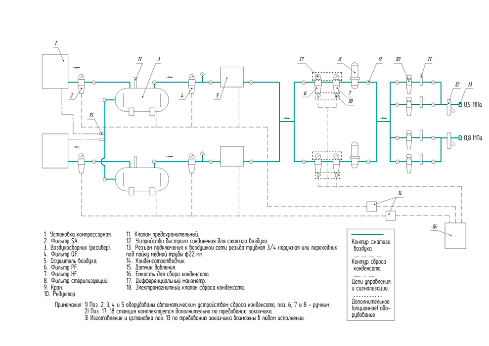 Центральні компресорні станції призначена для виробництва стисненого повітря високої якості, очищеного і відфільтрованого від бактеріальних і атмосферних забруднень.