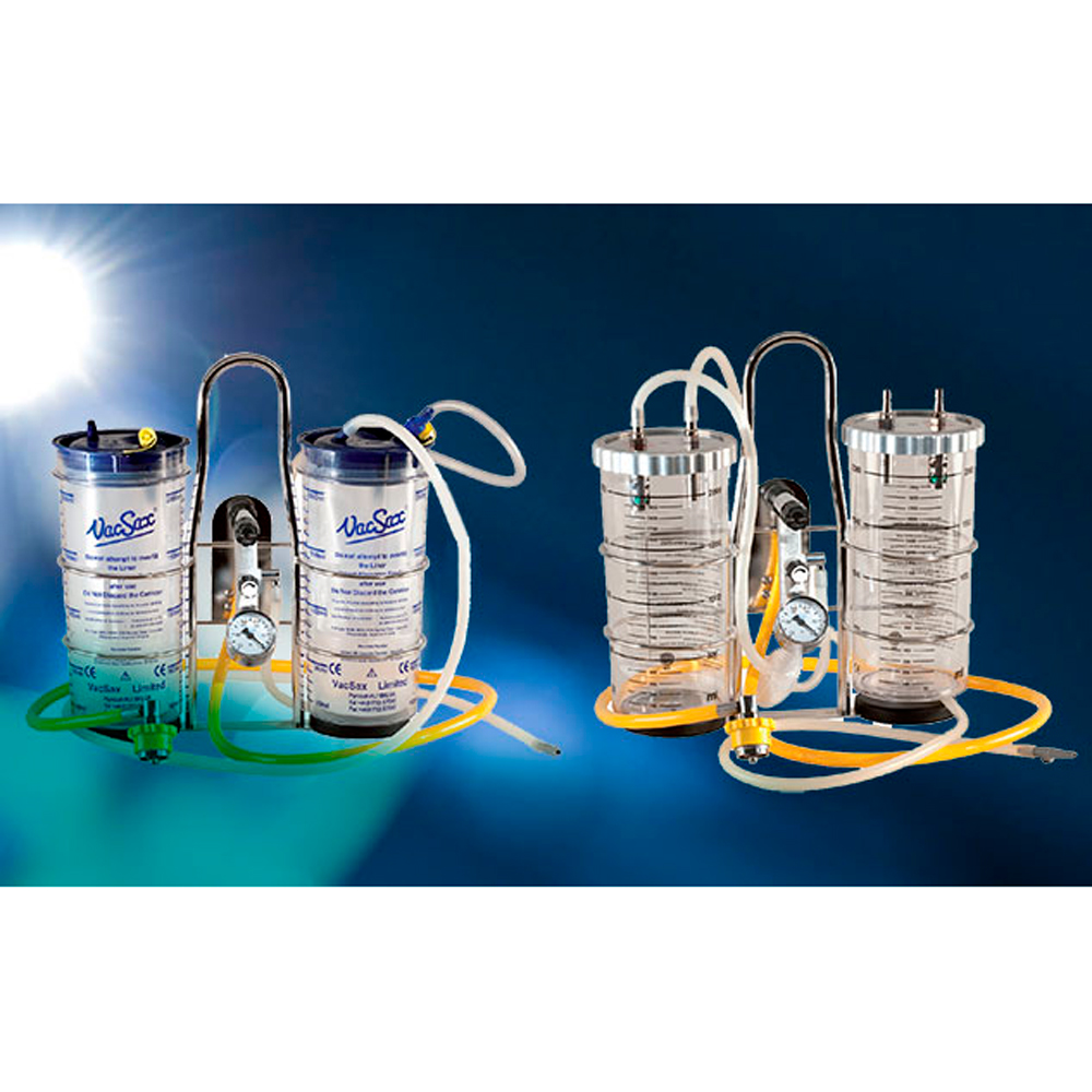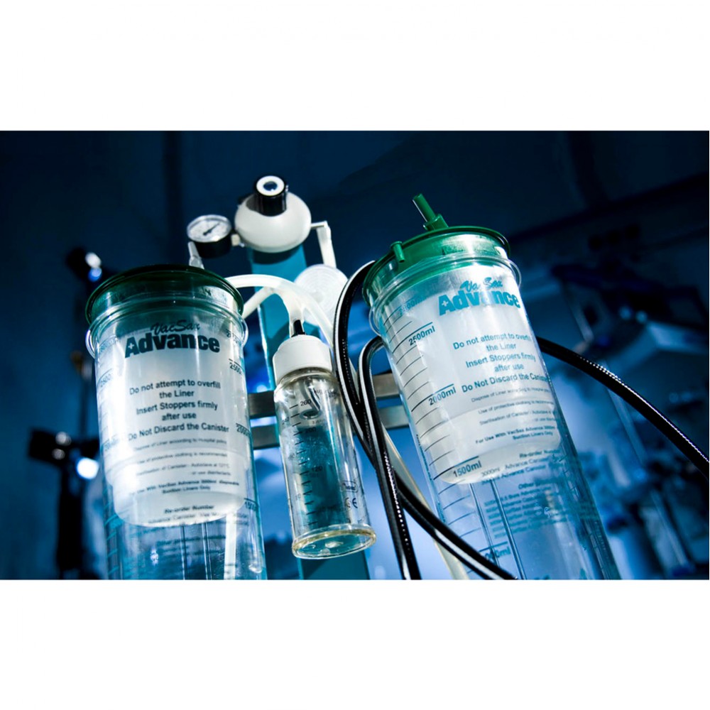 | 1500002 | Відсмоктувач, портативний із настінним рейковим з’єднанням із вакуумним живленням, включаючи 2 ємності по 2000мл багаторазового використання |